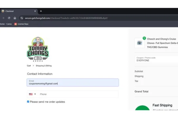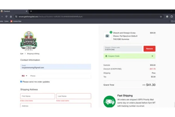 Check Tommy Chong’s official website or subscribe to their newsletter for free shipping codes. You can also find Coupon codes on affiliated sites like Couponsmining.